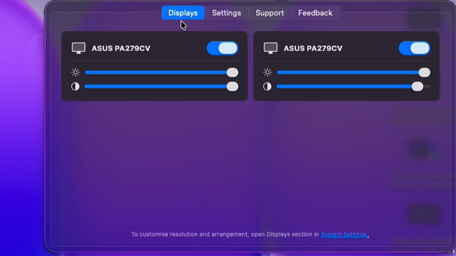 Im DisplayLink‑Manager lässt sich außerdem Helligkeit und Kontrast für jeden Monitor separat steuern.